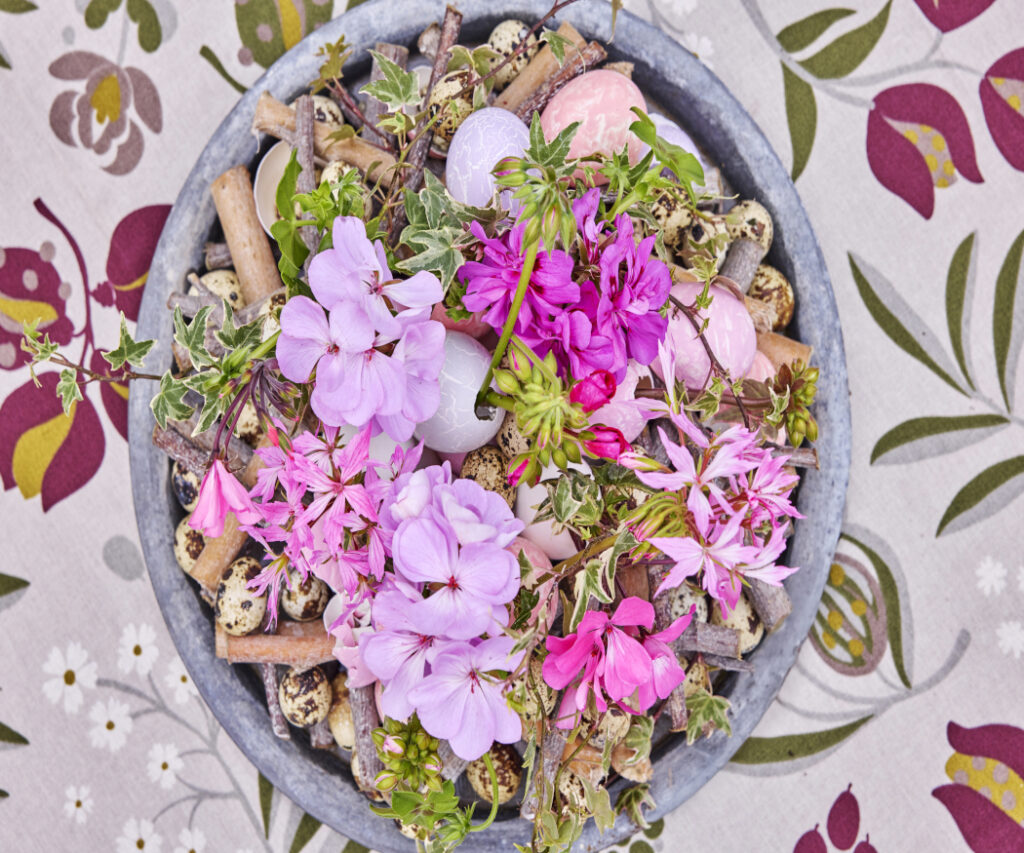 Les géraniums ne peuvent véritablement faire leur entrée dans le jardin que lorsque la météo est suffisamment clémente pour les installer à l’extérieur. Cependant, ces classiques estivaux peuvent être utilisés beaucoup plus tôt pour les décorations de Pâques.